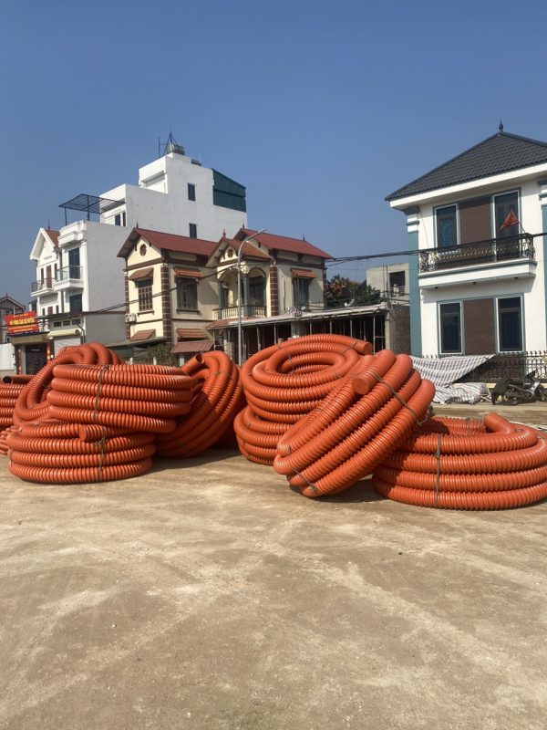 * Cấu tạo: Ống có cấu trúc dạng xoắn ốc với các gân nổi ở bên ngoài, giúp tăng cường độ cứng và khả năng chống va đập. Lòng ống bên trong trơn nhẵn, tạo điều kiện thuận lợi cho việc luồn cáp.